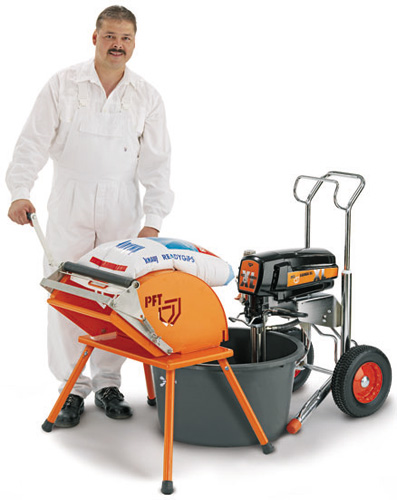 A PFT SAMBA é uma pistola de rebocar de utilização flexível para diversos materiais pastosos. O material a ser processado como, por exemplo a massa