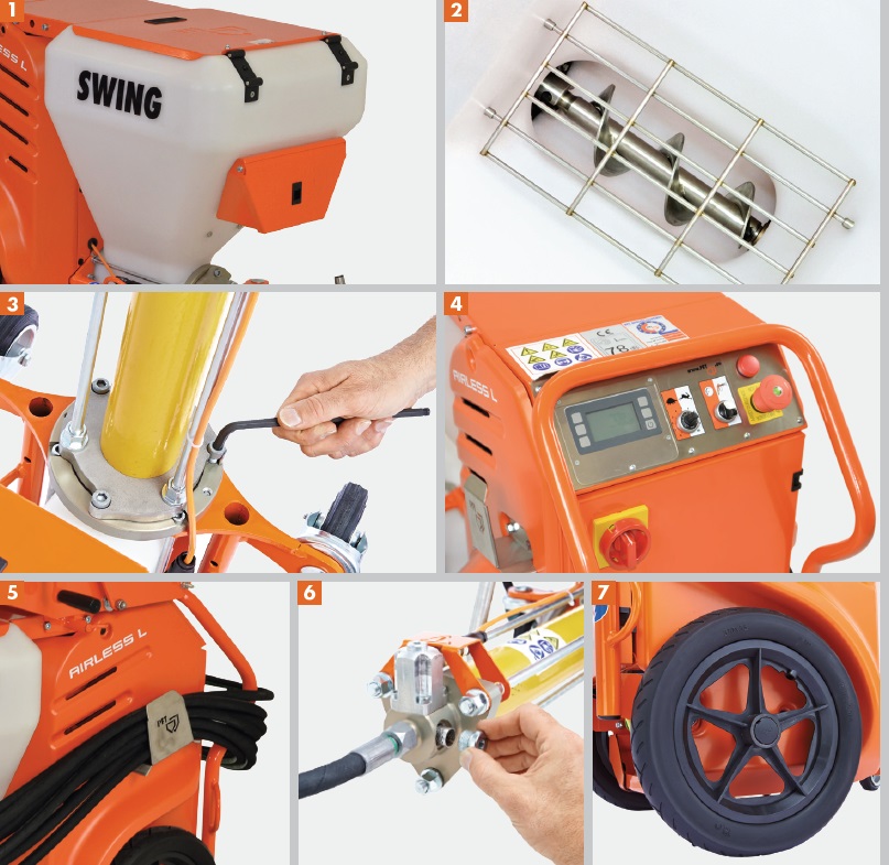 - Bomba, sem válvulas - Tecnologia Rotary Airless: Qualidade de pulverização melhorada devido a um efeito de amassamento na bomba.