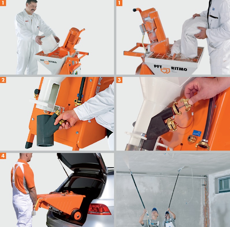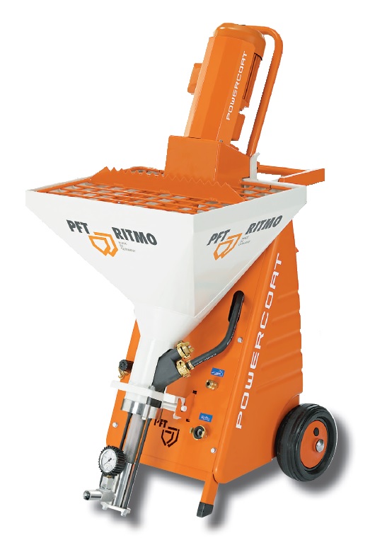 O comprovado PFT RITMO com o agitador revolucionário feito de aço inoxidável / borracha que, pela primeira vez, permite que a máquina esmague