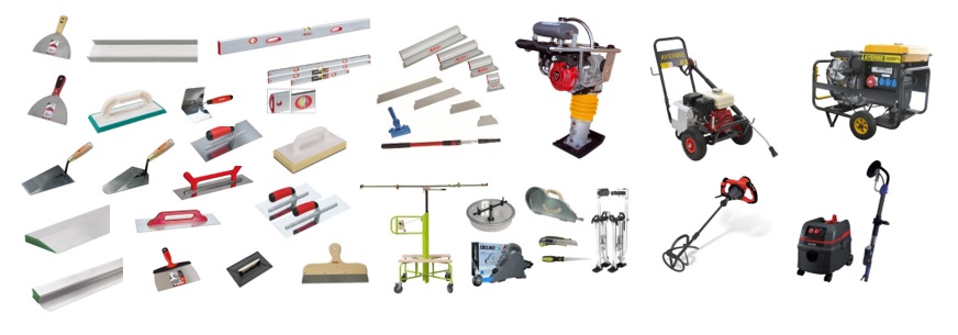 assim como todo o tipo de acessórios para as mesmas. Pode também encontrar algumas ferramentas e perfis para a indústria da construção civil, como talochas, réguas,
