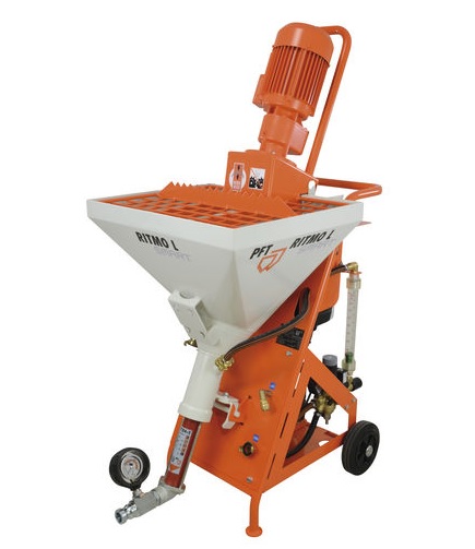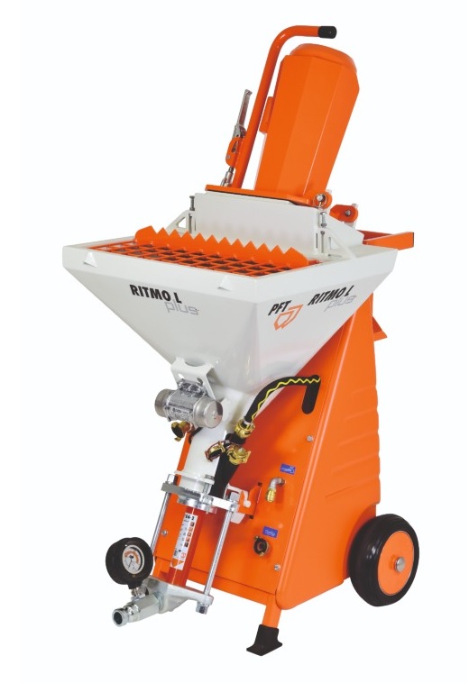 A nova misturadora compacta PFT RITMO XL com motor de corrente alternada de 230 V, também disponivel com motor trifásico de 400 V foi especialmente desenvolvida para bombear, projectar e para aplicações de argamassas secas.