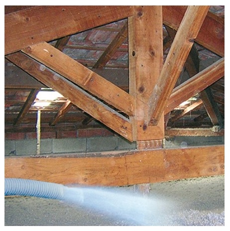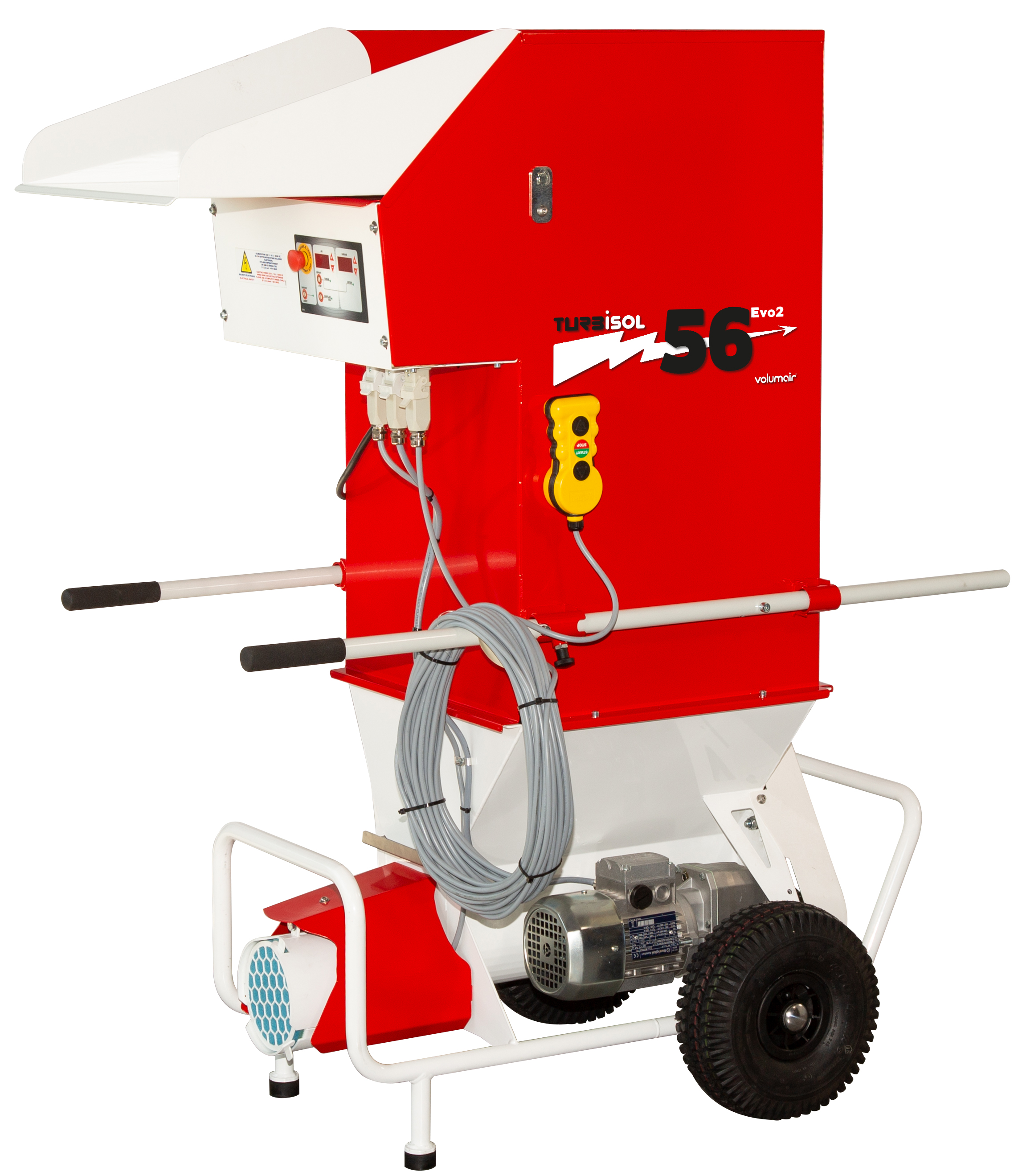 Máquina potente para a aplicação de isolamento térmico e acústico interior.